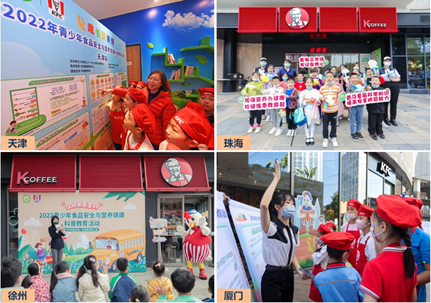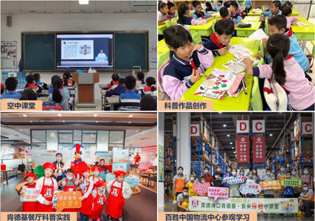 青少年食品安全与营养健康科普教育活动是由中国关心下一代工作委员会教育中心主办、中国健康教育中心技术指导、食安在线承办、百胜中国及旗下肯德基品牌公益协办。本活动围绕“让成长更美好”主题,在过去一年走进重庆、厦门、徐州、珠海等10个城市90多所学校,深入到当地肯德基食安营养科普主题餐厅,通过科普讲座、手册展板、科学实验、社会实践等丰富多彩的形式开展科普教育,引导同学们关注食品安全,提高营养健康意识。2022年全新推出的青少年食品安全与营养健康科普作品征集环节,不仅展现了青少年的学习成果,还实现了科普知识与青少年双向互动模式的升级。