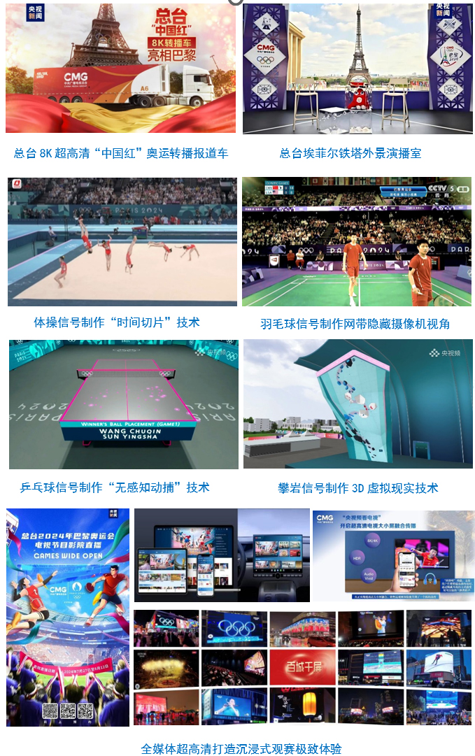巴黎奥运会转播出新出彩。作为中标巴黎奥运会转播项目最多的国际媒体,总台首次在境外实现全4K超高清转播制作,在百余年奥运历史上首次实现夏奥会赛事8K超高清电视公用信号制播。“时间切片”“无感知动捕”等创新技术为全球观众带来更加真实和震撼的观赛感受。