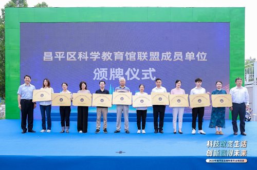“科技馆之城”建设是昌平区推动科普资源全方位覆盖的重要举措。启动仪式上,北京市科协党组成员副主席孟凡兴、昌平区区委副书记冷强田,共同为2025年新加入昌平区科学教育馆联盟的十家成员单位授牌。这十家成员单位分别是:北京金六环农业科技有限公司、大运河遗址公园、北京卓源智通科技有限公司、北京达奇月泉仿生科技有限公司、北京爱康宜诚医疗器材有限公司、三一重能股份有限公司、道博医疗科技(北京)有限公司、北京昌发展医药健康科技有限公司、昌平区国防动员宣传教育体验馆、天通苑北街道党群服务中心。